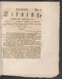CARLSTADS TIDNING 1808-02-06 Fritt Upphov Ingen uppgift Utgivningsår 1808 Ingår i samling Carlstads tidning Kategori Tidningsnummer