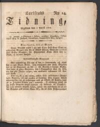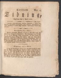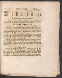 CARLSTADS TIDNING 1808-04-02 Fritt Upphov Ingen uppgift Utgivningsår 1808 Ingår i samling Carlstads tidning Kategori Tidningsnummer