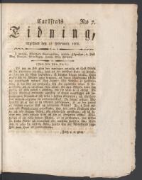 CARLSTADS TIDNING 1808-02-20 Fritt Upphov Ingen uppgift Utgivningsår 1808 Ingår i samling Carlstads tidning Kategori Tidningsnummer