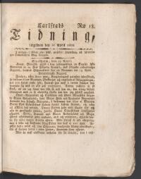 CARLSTADS TIDNING 1808-04-30 Fritt Upphov Ingen uppgift Utgivningsår 1808 Ingår i samling Carlstads tidning Kategori Tidningsnummer