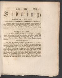 CARLSTADS TIDNING 1808-05-21 Fritt Upphov Ingen uppgift Utgivningsår 1808 Ingår i samling Carlstads tidning Kategori Tidningsnummer