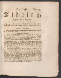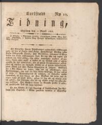 CARLSTADS TIDNING 1808-03-19 Fritt Upphov Ingen uppgift Utgivningsår 1808 Ingår i samling Carlstads tidning Kategori Tidningsnummer