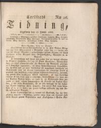 CARLSTADS TIDNING 1808-06-18 Fritt Upphov Ingen uppgift Utgivningsår 1808 Ingår i samling Carlstads tidning Kategori Tidningsnummer