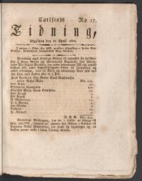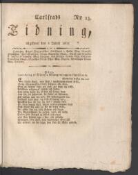 CARLSTADS TIDNING 1808-04-23 Fritt Upphov Ingen uppgift Utgivningsår 1808 Ingår i samling Carlstads tidning Kategori Tidningsnummer
