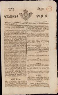 STOCKHOLMS DAGBLAD 1824-07-26 Fritt Upphov Ingen uppgift Utgivningsår 1824 Ingår i samling Stockholms dagblad Kategori Tidningsnummer
