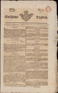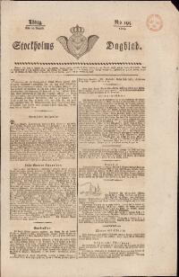 STOCKHOLMS DAGBLAD 1824-08-25 Fritt Upphov Ingen uppgift Utgivningsår 1824 Ingår i samling Stockholms dagblad Kategori Tidningsnummer