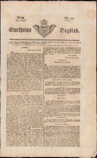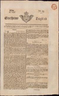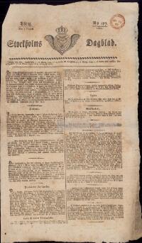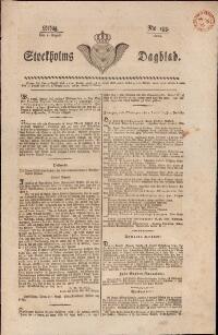 STOCKHOLMS DAGBLAD 1824-08-02 Fritt Upphov Ingen uppgift Utgivningsår 1824 Ingår i samling Stockholms dagblad Kategori Tidningsnummer