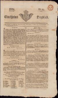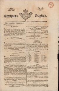 STOCKHOLMS DAGBLAD 1824-08-26 Fritt Upphov Ingen uppgift Utgivningsår 1824 Ingår i samling Stockholms dagblad Kategori Tidningsnummer