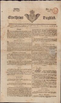 STOCKHOLMS DAGBLAD 1824-08-24 Fritt Upphov Ingen uppgift Utgivningsår 1824 Ingår i samling Stockholms dagblad Kategori Tidningsnummer