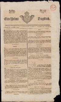 STOCKHOLMS DAGBLAD 1824-07-14 Fritt Upphov Ingen uppgift Utgivningsår 1824 Ingår i samling Stockholms dagblad Kategori Tidningsnummer