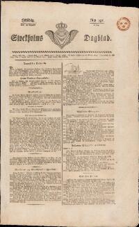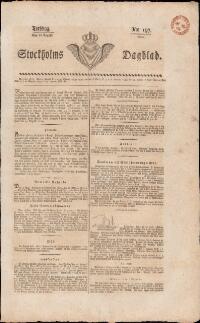 STOCKHOLMS DAGBLAD 1824-08-27 Fritt Upphov Ingen uppgift Utgivningsår 1824 Ingår i samling Stockholms dagblad Kategori Tidningsnummer