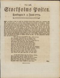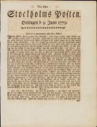 STOCKHOLMSPOSTEN 1779-06-16 Fritt Upphov Ingen uppgift Utgivningsår 1779 Ingår i samling Stockholms Posten (Online) Kategori Tidningsnummer