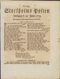 STOCKHOLMSPOSTEN 1779-06-19 Fritt Upphov Ingen uppgift Utgivningsår 1779 Ingår i samling Stockholms Posten (Online) Kategori Tidningsnummer