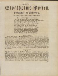 STOCKHOLMSPOSTEN 1779-05-22 Fritt Upphov Ingen uppgift Utgivningsår 1779 Ingår i samling Stockholms Posten (Online) Kategori Tidningsnummer