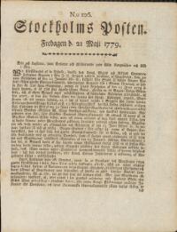 STOCKHOLMSPOSTEN 1779-05-21 Fritt Upphov Ingen uppgift Utgivningsår 1779 Ingår i samling Stockholms Posten (Online) Kategori Tidningsnummer