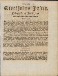 STOCKHOLMSPOSTEN 1779-06-18 Fritt Upphov Ingen uppgift Utgivningsår 1779 Ingår i samling Stockholms Posten (Online) Kategori Tidningsnummer
