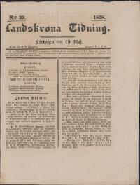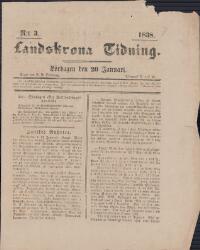 LANDSKRONA TIDNING 1838-01-20 Fritt Upphov Ingen uppgift Utgivningsår 1838 Ingår i samling Landskrona tidning Kategori Tidningsnummer