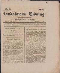 LANDSKRONA TIDNING 1838-03-17 Fritt Upphov Ingen uppgift Utgivningsår 1838 Ingår i samling Landskrona tidning Kategori Tidningsnummer