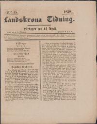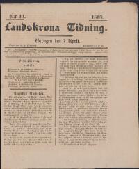 LANDSKRONA TIDNING 1838-04-14 Fritt Upphov Ingen uppgift Utgivningsår 1838 Ingår i samling Landskrona tidning Kategori Tidningsnummer