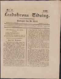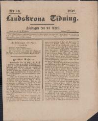 LANDSKRONA TIDNING 1838-04-28 Fritt Upphov Ingen uppgift Utgivningsår 1838 Ingår i samling Landskrona tidning Kategori Tidningsnummer
