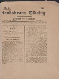 LANDSKRONA TIDNING 1838-01-05 Fritt Upphov Ingen uppgift Utgivningsår 1838 Ingår i samling Landskrona tidning Kategori Tidningsnummer