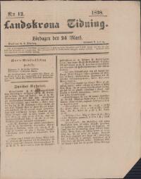 LANDSKRONA TIDNING 1838-03-24 Fritt Upphov Ingen uppgift Utgivningsår 1838 Ingår i samling Landskrona tidning Kategori Tidningsnummer