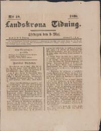 LANDSKRONA TIDNING 1838-05-05 Fritt Upphov Ingen uppgift Utgivningsår 1838 Ingår i samling Landskrona tidning Kategori Tidningsnummer