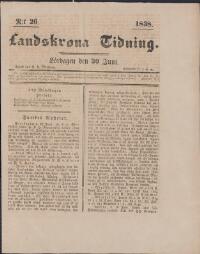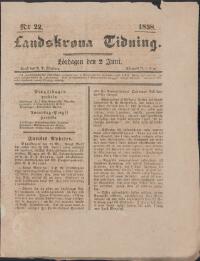 LANDSKRONA TIDNING 1838-06-23 Fritt Upphov Ingen uppgift Utgivningsår 1838 Ingår i samling Landskrona tidning Kategori Tidningsnummer