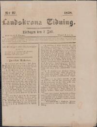 LANDSKRONA TIDNING 1838-07-07 Fritt Upphov Ingen uppgift Utgivningsår 1838 Ingår i samling Landskrona tidning Kategori Tidningsnummer