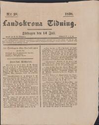 LANDSKRONA TIDNING 1838-07-14 Fritt Upphov Ingen uppgift Utgivningsår 1838 Ingår i samling Landskrona tidning Kategori Tidningsnummer