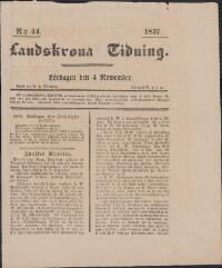 LANDSKRONA TIDNING 1837-11-04 Fritt Upphov Ingen uppgift Utgivningsår 1837 Ingår i samling Landskrona tidning Kategori Tidningsnummer