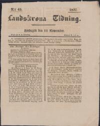 LANDSKRONA TIDNING 1837-11-11 Fritt Upphov Ingen uppgift Utgivningsår 1837 Ingår i samling Landskrona tidning Kategori Tidningsnummer