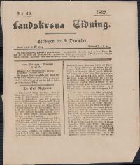 LANDSKRONA TIDNING 1837-12-02 Fritt Upphov Ingen uppgift Utgivningsår 1837 Ingår i samling Landskrona tidning Kategori Tidningsnummer