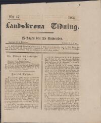 LANDSKRONA TIDNING 1837-11-18 Fritt Upphov Ingen uppgift Utgivningsår 1837 Ingår i samling Landskrona tidning Kategori Tidningsnummer