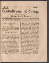LANDSKRONA TIDNING 1838-02-10 Fritt Upphov Ingen uppgift Utgivningsår 1838 Ingår i samling Landskrona tidning Kategori Tidningsnummer