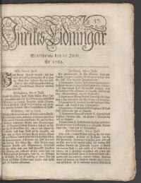 INRIKES TIDNINGAR 1762-07-12 Fritt Upphov Ingen uppgift Utgivningsår 1762 Ingår i samling Inrikes tidningar Kategori Tidningsnummer