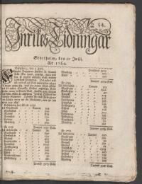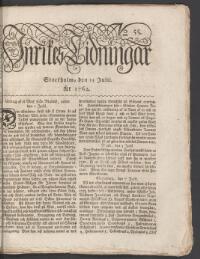 INRIKES TIDNINGAR 1762-07-22 Fritt Upphov Ingen uppgift Utgivningsår 1762 Ingår i samling Inrikes tidningar Kategori Tidningsnummer