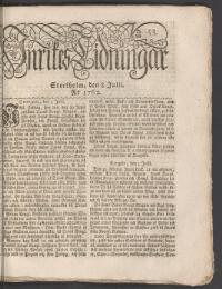 INRIKES TIDNINGAR 1762-07-08 Fritt Upphov Ingen uppgift Utgivningsår 1762 Ingår i samling Inrikes tidningar Kategori Tidningsnummer