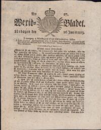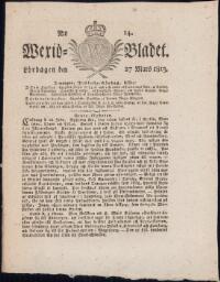 WEXJÖBLADET 1813-03-27 Fritt Upphov Ingen uppgift Utgivningsår 1813 Ingår i samling Wexjöbladet Kategori Tidningsnummer