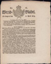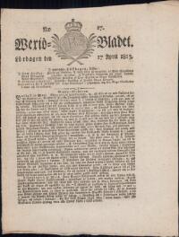 WEXJÖBLADET 1813-04-17 Fritt Upphov Ingen uppgift Utgivningsår 1813 Ingår i samling Wexjöbladet Kategori Tidningsnummer