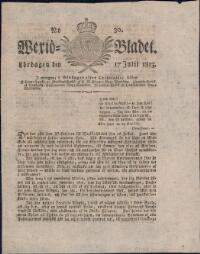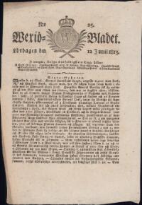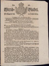WEXJÖBLADET 1813-06-19 Fritt Upphov Ingen uppgift Utgivningsår 1813 Ingår i samling Wexjöbladet Kategori Tidningsnummer