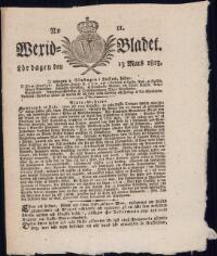 WEXJÖBLADET 1813-03-13 Fritt Upphov Ingen uppgift Utgivningsår 1813 Ingår i samling Wexjöbladet Kategori Tidningsnummer