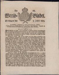 WEXJÖBLADET 1813-07-24 Fritt Upphov Ingen uppgift Utgivningsår 1813 Ingår i samling Wexjöbladet Kategori Tidningsnummer