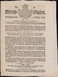 WEXJÖBLADET 1813-05-29 Fritt Upphov Ingen uppgift Utgivningsår 1813 Ingår i samling Wexjöbladet Kategori Tidningsnummer