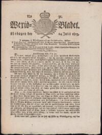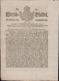 WEXJÖBLADET 1813-07-31 Fritt Upphov Ingen uppgift Utgivningsår 1813 Ingår i samling Wexjöbladet Kategori Tidningsnummer