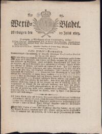 WEXJÖBLADET 1813-07-10 Fritt Upphov Ingen uppgift Utgivningsår 1813 Ingår i samling Wexjöbladet Kategori Tidningsnummer