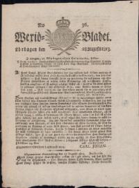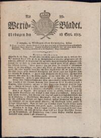 WEXJÖBLADET 1813-09-18 Fritt Upphov Ingen uppgift Utgivningsår 1813 Ingår i samling Wexjöbladet Kategori Tidningsnummer