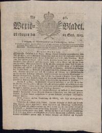 WEXJÖBLADET 1813-09-25 Fritt Upphov Ingen uppgift Utgivningsår 1813 Ingår i samling Wexjöbladet Kategori Tidningsnummer