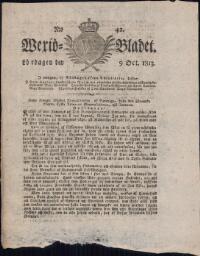 WEXJÖBLADET 1813-10-09 Fritt Upphov Ingen uppgift Utgivningsår 1813 Ingår i samling Wexjöbladet Kategori Tidningsnummer