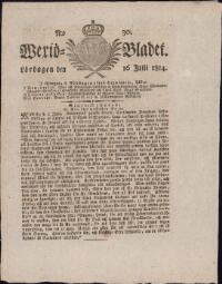 WEXJÖBLADET 1814-07-23 Fritt Upphov Ingen uppgift Utgivningsår 1814 Ingår i samling Wexjöbladet Kategori Tidningsnummer